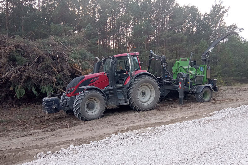 Rozdrabnianie gałęzi, zrzyn tartacznych i innych odpadów drzewnych.